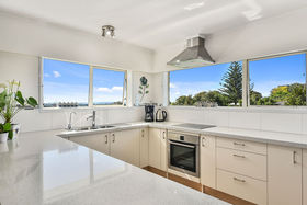 The beautiful recently renovated kitchen is one you would expect to find in a large family home, cooking will be an absolute delight while taking in the gorgeous views across the valley to Rangitoto - it is literally the icing on the cake.
