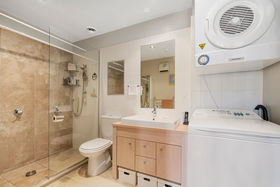 Secure 2 car parking spaces (not tandem) and a large storage unit of approx. 2 meters long x 1 meter wide as well as a lockable garden shed in the basement with lift & stair access.