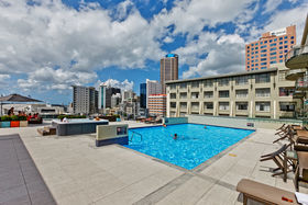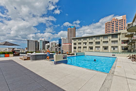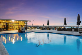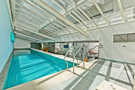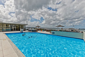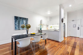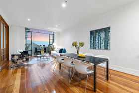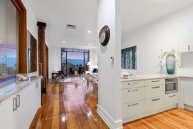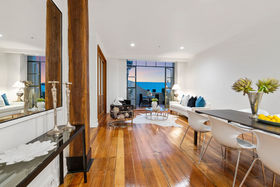 The key-card entrance to the fourth-floor apartment opens up to a large and inviting open-plan living and dining area with a glorious high stud ceiling and the original floor-to-ceiling windows. The sun-drenched deck captures vistas of the Waitemata Harbour but the view becomes breathtakingly panoramic from Auckland's highest roof-top heated swimming pool, gym, spa and summertime cocktail bar.