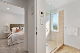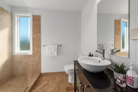 The indoor/outdoor flow is generously complimented with the two sets of large double french-doors that open out onto the extremely generous sunny, private deck offering the expansive views, the outdoor pull down blinds turn this deck area into another living area in the warmer months of the year.