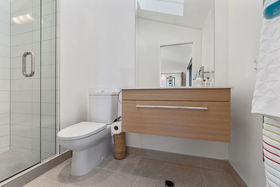 A host of additional features that include: 2.7 metre stud height, double glazing, underfloor heating in kitchen and both bathrooms, cosy gas fire, two heat pumps, Bosch appliances, spacious double garage with additional attic storage, PLUS 3 off-street parking, private spacious decks off the living/dining area, master suite and both guest bedrooms.
