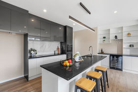 Beautifully proportioned with a functional and contemporary layout including three separate living areas, spacious open plan kitchen/scullery and living area downstairs, leading out to the decks where you can sit and enjoy a glass of wine or coffee. It boasts 5 super-sized bedrooms, 3 bathrooms including 2 en-suites, for both upstairs and downstairs, designed to maximize sun, allow space and separation for everyone. Separate large laundry is a super plus.