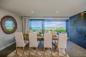 This 4 bedroom, 3 bathroom prestigious home is the essence of elegance and style. Capturing the all-day sun, it is surrounded by a picturesque landscape of stunning panoramic sea & rural native bush views over Karepiro Bay and Hauraki Gulf.