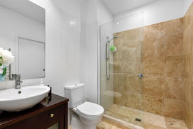 Recently carpeted and painted through out; the very generous master bedroom 'SUITE' will pleasantly surprise you with the walk-in wardrobe that leads you through to the overly spacious bathroom of natural Travertine flooring with under-floor heating. The second bedroom is also of very good dimensions.