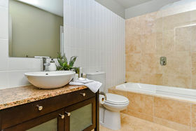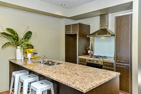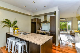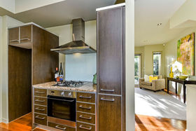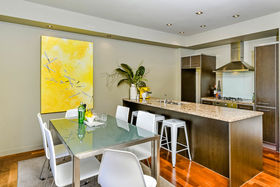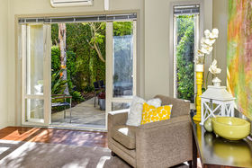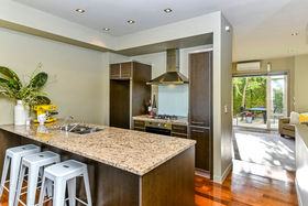 The semi-open plan living/dining/kitchen area on the first floor has double french doors at each end, from the living area they open out onto the very private sunny courtyard/ garden, great for relaxing or outdoor dining, or you can enjoy sitting out on the "Juliet" balcony off the dining area in the early morning sun while taking in the fabulous views over Albany Basin to Auckland City taking in the Sky Tower, North Harbour Stadium and across to the Waitakeres.